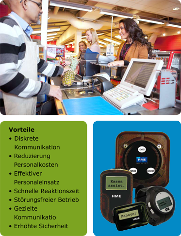 Die Mitarbeiter die gerufen werden, erhalten bei Arbeitsbeginn/ Ablösung einen Pager mit Textfeld, so das auch eine Rufzuordnung bei mehreren Kassen/ Rufstationen sichergestellt ist.
